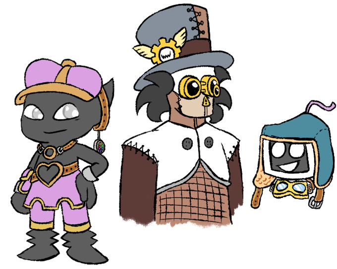 Final/Dark World Kluns redesign (original design by @/linedol, B.B getting that hair do, arcade boxart try-out, and a whole ton of other B.B hairstyle ideas.