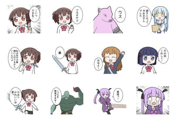 異世界勇者ミズキのLINEスタンプ第3弾を作りました! https://t.co/RqHuWBu66q 「ブタギガス」「ウス」