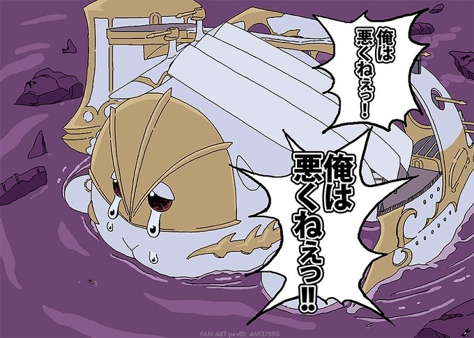 「俺は悪くねぇっ!」に巻き込まれているモルカー化タルタロスことモルタロスちゃん。そしてセルパーティクルで打ち上げられる。