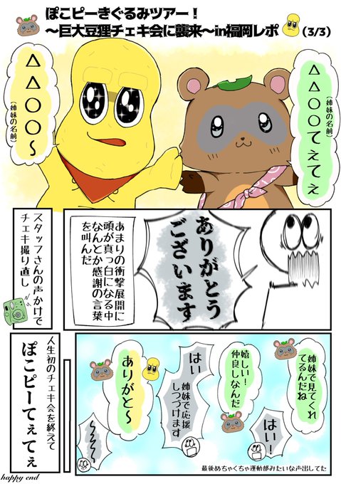 『ぽこピーきぐるみツアー!〜巨大豆狸チェキ会に襲来〜in福岡』レポ漫画 文字数多めです。 #ぽこピーチェキ会