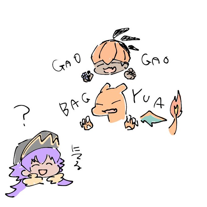 昨日のバと🔥似てるねえっていう絵の続き(?)※子デ🔥+仔バとプ有(たぶん手は子ソ)