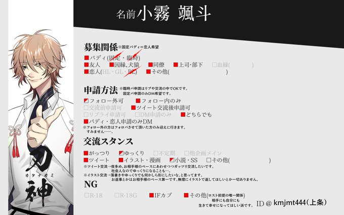 @KATANAGAMI_kabe まだ練ってる途中なんですが早く交流したい気持ちとやる気アップのため…🥳
