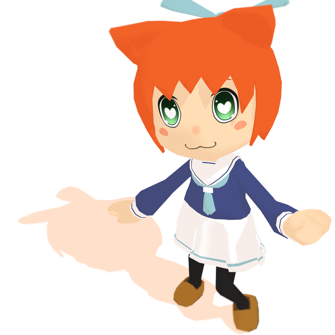 リボンつけてないしマテリアル塗り分けだけでテクスチャまだいじってないけどMMD出力からの表示テスト