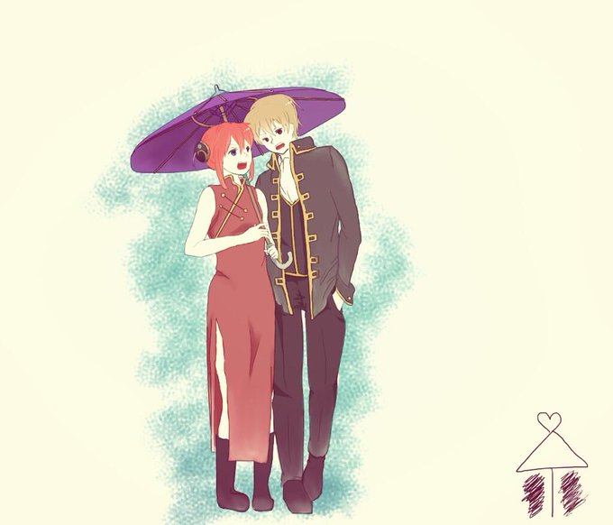 @kobahika12 リク絵、遅くなってすいません… 沖神で相合傘です! 言い争いつつ仲良く相合傘してる2人を描いてました 字無しの方ものっけときます^o^