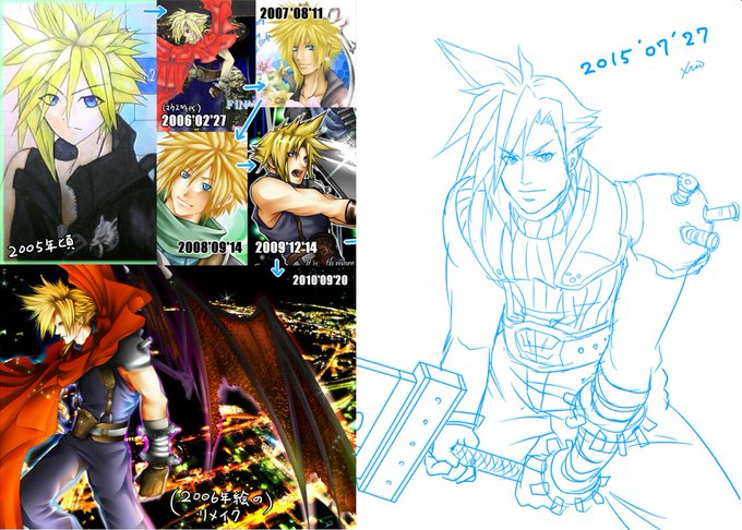 発売おめでとう絵描きたかったけどバタついて描けなそうなので FF7R発売前夜に見つかる限りの過去に描いてきた7関係の絵再掲でも 一番古いので中学1年