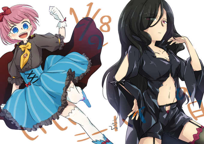 #いい双子の日 らしいので双子~! 前二枚がザクロとヨツバで、後二枚が白と黒です。男女の双子しか描いてない……🤔🤔