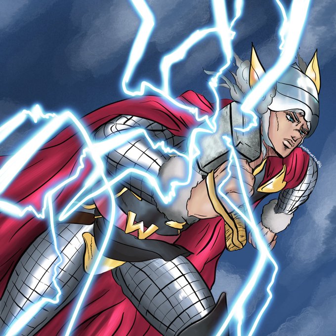 Reposting my Weather Report fanart cosplaying as an Asgardian god in celebration of #ThorLoveAndThunder 's teaser release!