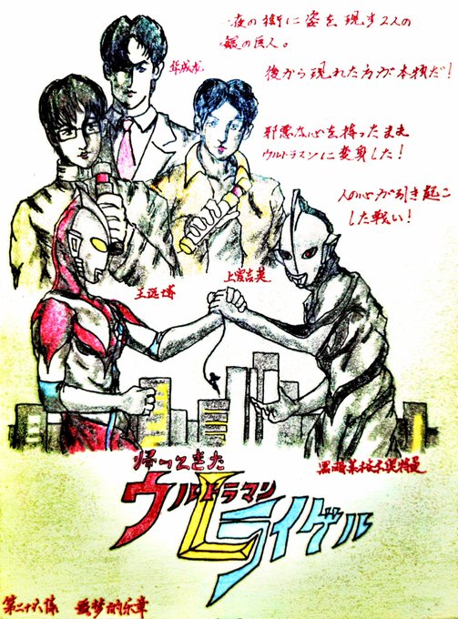 @yama_oritra さんのウルトラマンサルヴァトーレ 4年前にこのシーンを描きましたが、今回はリメイク版です。 #オリトラマン #ウルトラマンライゲル #ウルトラマン