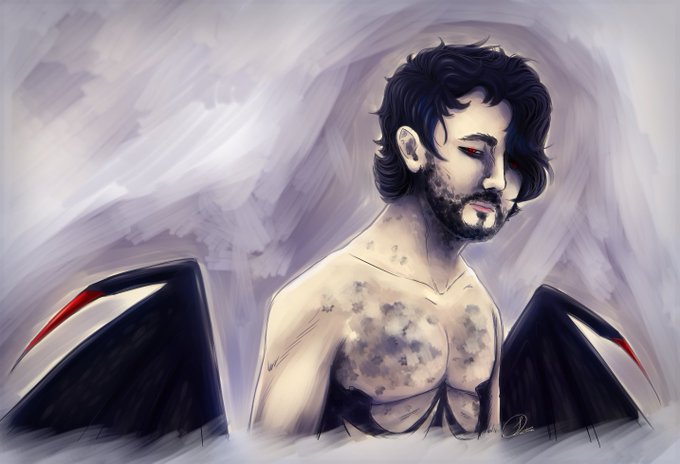 Finally got around to painting something DAMIEN related! :D Pink-eyed boy in the snow 🌺❄️