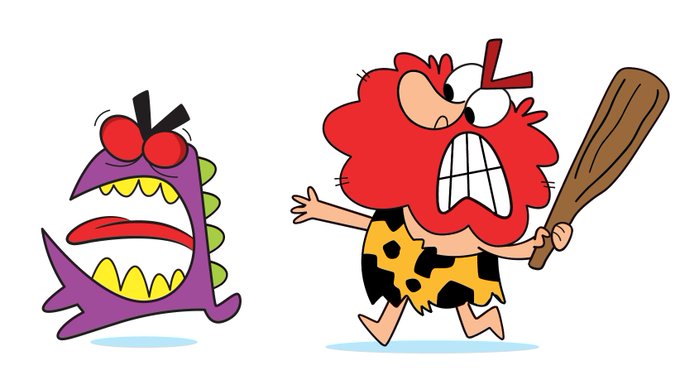 CAVEMAN CHASING MONSTER-Idea for video game #illustration #characterdesigns #videogames #caveman #monsters #vectorillustration #millertoons