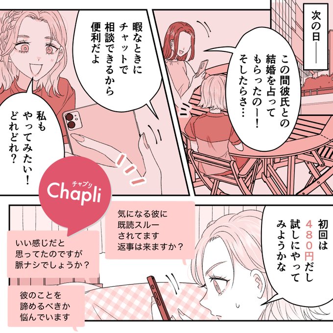 チャプリ様(@Chapli_official )でまたまた広告マンガを制作させていただきました! ありがとうございます❦ #PR #チャット占い #Chapli #チャプリ