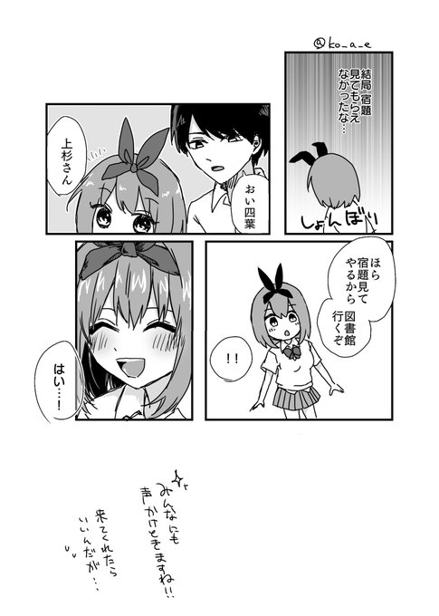 3、4話の頃のふたり 英語の宿題見せたの四葉なりのかまちょだったらかわいいなって #風四