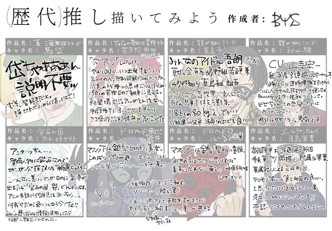夜ふかしして描いちゃったー!! 好きなキャラクター達のほんの一部。