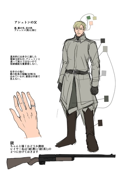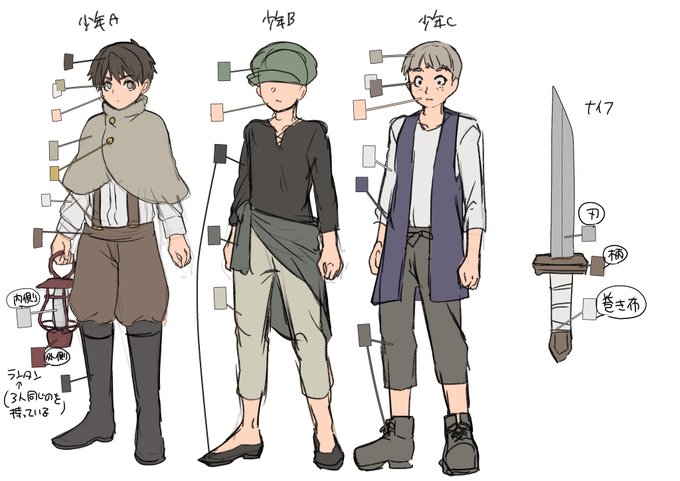 男キャラの色資料 4年前より作画が安定できたかな
