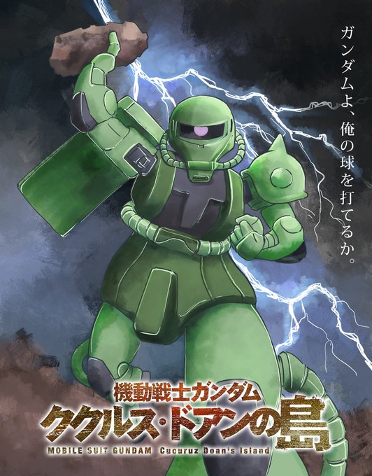 おはようございます。 #ザクの日 に衝撃発表された「ドアンザクの面長は公式設定」 そして「岩投げ」を知らずに制作を開始した安彦氏、そりゃねえぜ!! ということで、 昨日1日掛けて、こんなつまらん絵を描いてましたw ~ 飛雄馬めがけ、ドアンが闘魂こめて投じます!~ #ククルス・ドアンの島
