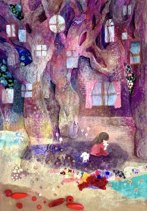 #GWアナログ絵祭り 陶にアクリル絵の具で描いています。 ビーズや布も使って表現しています。