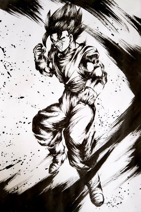 ゴジータに色つけてみました☺ #ドラゴンボール #ドラゴンボールヒーローズ #模写 #墨絵 #イラスト