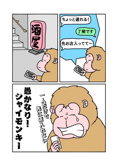 7年間ずっとコントをやり続けているものの、ピンなばかりにコントの大会に出ることすら叶わない。社交性・協調性の欠如が自分の人生の幅を狭めることの一例だ。 そんな大人たちを反面教師に、未来ある若者にこそ読んでほしい。『愚かなり!シャイモンキー』粛々連載中。 #シャイモンキー