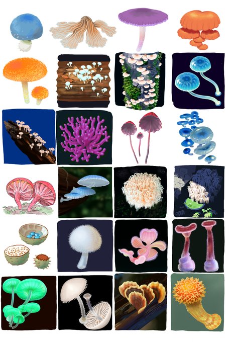 キノコ これもキノコらしいです。 自分の描写も自信ないですが、スケッチ元の写真見ても本当にこれキノコなの?ってくらい不思議な見た目です。 #きのこ #イラスト