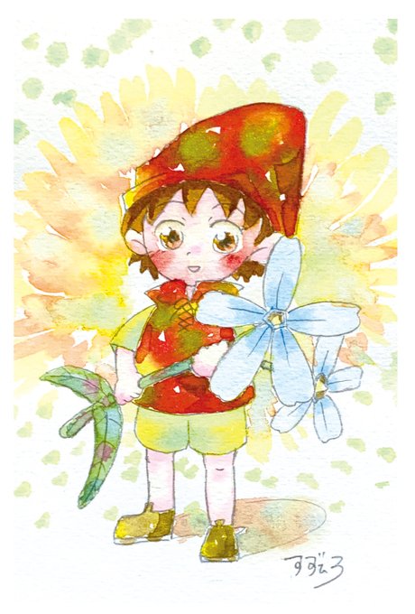 チオ。最初はすずひろの分身的な立ち位置だったが、天然という設定を入れたら私の中で使いやすい推しキャラになった。こびとの4人の中では一番若い。まだ子供っぽさが残る。若いのに苦労屋設定があるのだが、持ち前の天然でそれを感じさせない性格に。