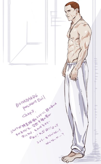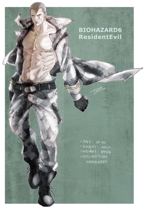 バイオハザード6 の、ジェイクを描いたもの(再掲 過去データを漁ってると、そこそこ脱げてる事に気づくけど、ゲーム内でも脱げてるから、大丈夫 右頬の傷が特徴的だから、そっちばっかり描きがちなので、構図は被りまくりますよ #JakeMuller