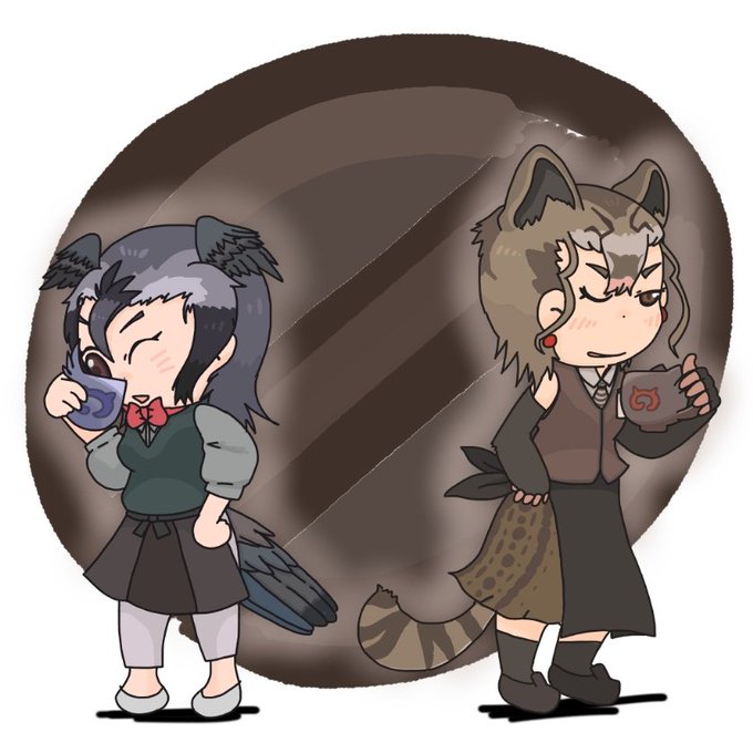 ジャクーの相棒をしている。 ジャクーと同じくフレーバーコーヒーを作るのが得意。 <ジャクー、このフレーバーも少し強くつけてよー。 #オリフレ #オリジナル