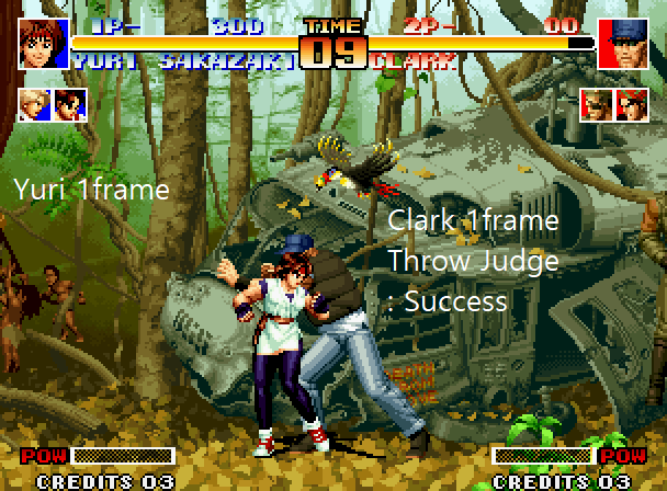 1P의 경우 잡기 성공 여부를 판정함과 동시에(동일 프레임 내) 잡기 동작을 취하고 상대는 피격 모션을 취합니다