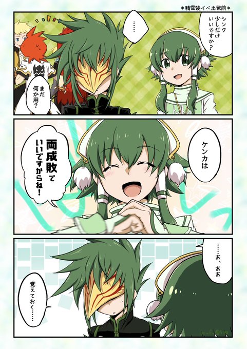 久しぶりにまんが描けたーーー!!! 昨日終わったテイルズオブザレイズ精霊装イベント出発前だんだん逞しくなる七番目まんが 赤毛がめっちゃ仲良くなっていくので緑っ子にも仲良くなってほしい。 イオンとシンクもっとお喋りして……ミトスも交えてくれていいよ……