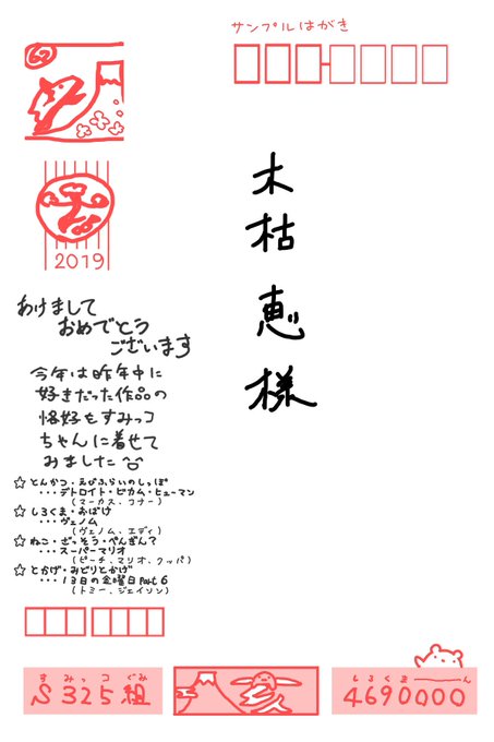 毎年こんな感じのお年賀描いてます。 最近親しくなった相互の方にも送りたい〜。 今年もすみっコちゃん年賀です☺️