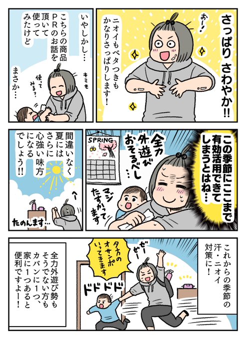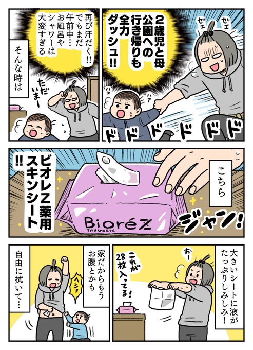 花王さまビオレZ @BioreZ_jp のプロモーションでビオレZ 薬用ボディシャワーとビオレZ 薬用ボディシートの2商品を使わせていただき、レポ漫画を描かせていただきました! この季節でもさっぱり汗や不快感を解消できて、夏にはさらに活躍しそうな商品です☀️