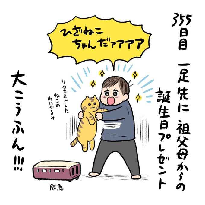 日記✍️誕生日のプレゼントラッシュ、親や各方面から色々もらったけど一番はひざねこちゃんでしたという感じ!今も毎日毎晩仲良く遊んどる