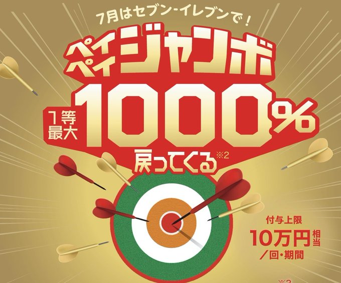 【更新】最大1,000%還元「セブンイレブンで当たる!ペイペイジャンボ」キャンペーンが7月1日より開催 https://t.co/UxnwgNdlrz