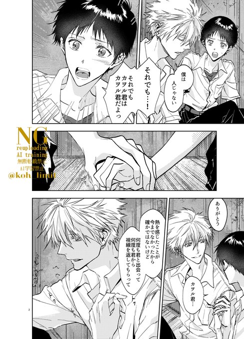 6月に出した本からなんですけど、個人的に加持さんとカヲル君の関係性て、コレ。 同性の友人。下ネタ込みの恋愛相談。雑な仲間。(でも実は突破力あるからお互いにいざという時頼りあえる)