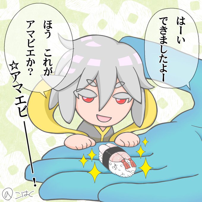 アマビエさんは前に描いたので、今回はアマエビにしました〜