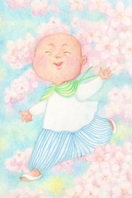 桜の花々の中で、楽しく舞い踊り駆け抜けていった小さな命を描きました。