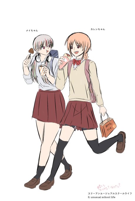 こんな感じでキャラクター考えて4コマでも描こうかなと考えております🤔右下には4コマのタイトルが書いてありますがまだ決まってましぇん…😭とりあえず、男女3人の高校生👨👩が少し変わってる😳高校生活を送るギャグ4コマ漫画です✨