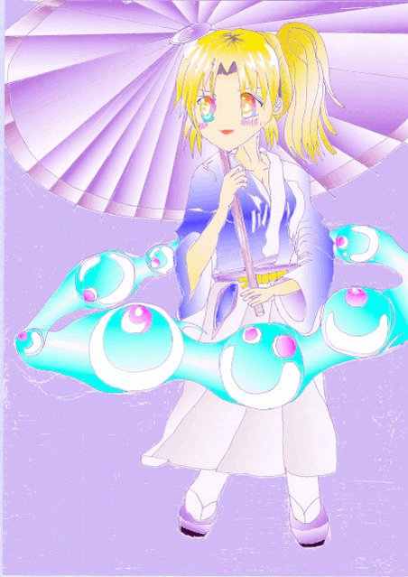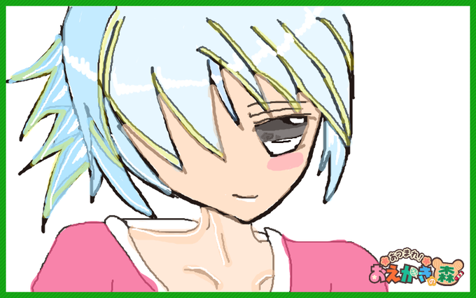 今日はpcから~。昨日動画をとった絵を 加工したのがこれ。 髪の毛、黄色だけじゃなくて、黒色を加えて塗る 必要があるみたい。 また今度描くときは注意します。