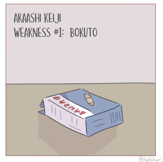 “weakness” a small bokuaka comic !! <3 #haikyuu #ハイキュー #ArtistOnTwitter #bokuaka #bokuto #akaashi #木赤
