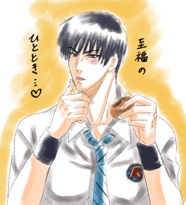 立海まんじゅうを食す真田は癒しだろうね... ※立海まんじゅうはイメージです。