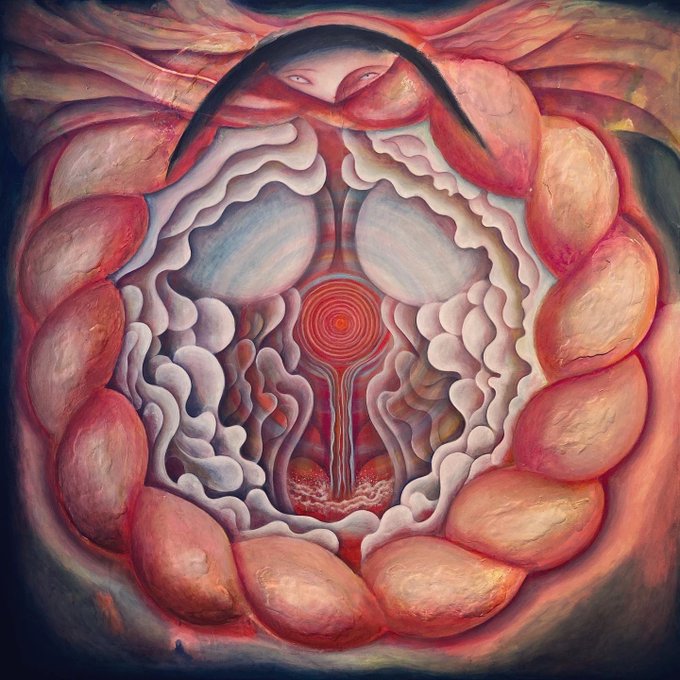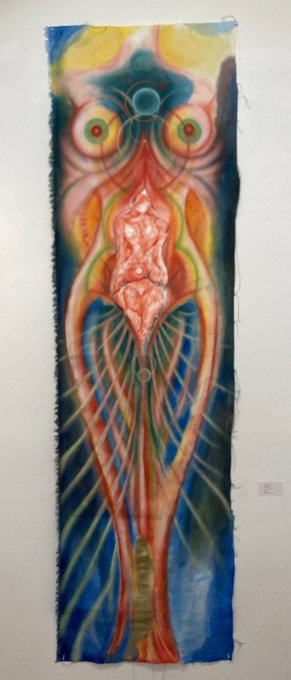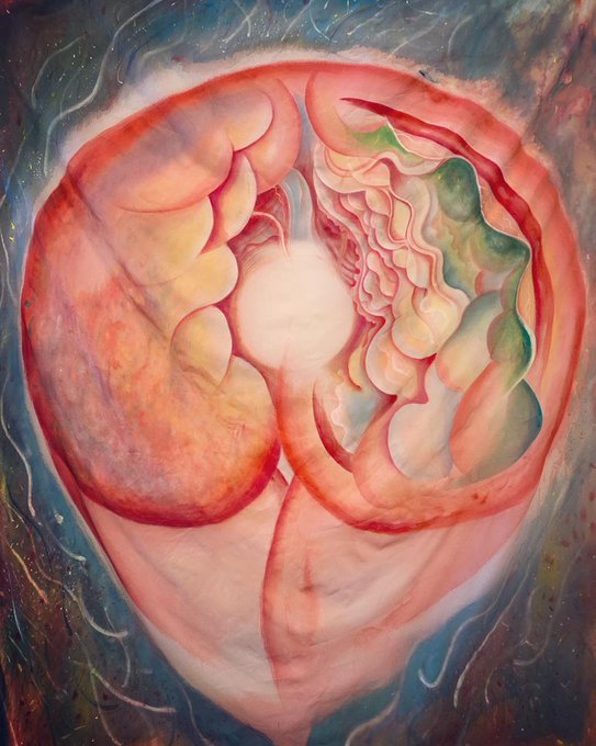 お腹だけ出すようにしたのは、身体に身体を重ねるんじゃなくて別の世界に体の一部だけを飛ばすようなイメージで、絵のなかにお腹だけがUFOのようにうかんでいるというもの。 ※私の体と一緒に撮って頂いた写真が完成形です。↓ Fusion 幸得feat.okajimax 8/18(水)〜22(日)BEATS ギャラリーB