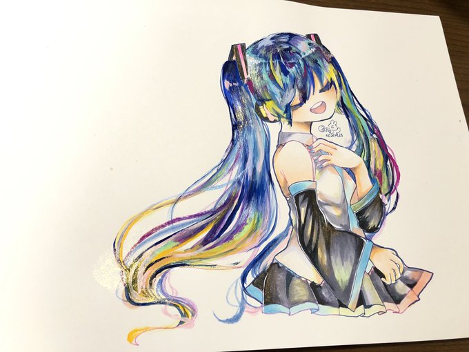 おむさん(@k_a__0610 )のミクさんとNEKOの原画を購入させていただきましたっ!!💕 好きなポイントを見て😇