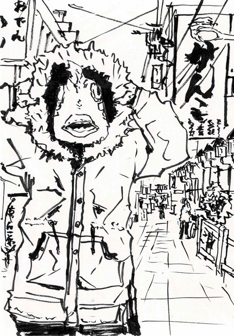 深夜3時くらいに絵を描きました。 魚は変温動物なので、陸の上では厚着をしているようです。