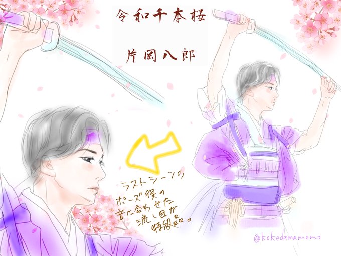 八郎@日向野祥さんの、ラストシーンの見得切るとこ、刀構えた後、音楽に合わせた流し目でさらに決めて下さり、本当に美しくて崇高で毎回心臓止まってた…
