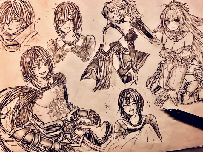 A4コピー用紙をfgoキャラで埋めるというチャレンジをこっそりしてた〜シャープペンです! 新宿のアサシンと嫁ネロちゃんとモードレッドとちょこっと風魔小太郎!