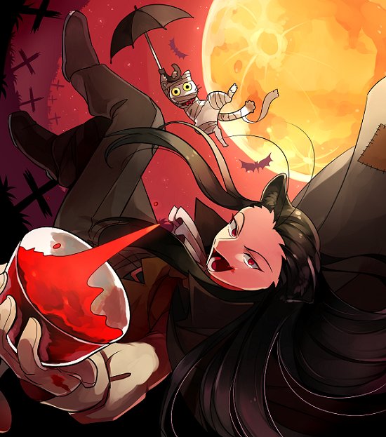ハロウィン魔法少女マスハが吸血鬼ゲーテ(テント住み)からお菓子を強奪しに行くの図