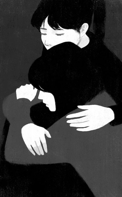 ちなみに今回の絵は、最初に顔を見ていただきまして、次に「あ、ナイフ」、最後に「あ、人が倒れてる」と順番で気づくように描いたつもりです。
