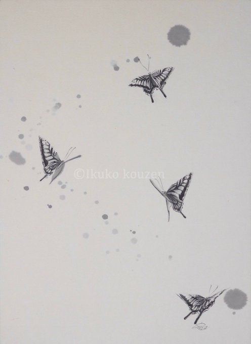 手漉き和紙に墨で絵を描いています 身近ないきものや植物をモチーフにすることが多いです #10月になったのでフォロワーさんに自己紹介しようぜ
