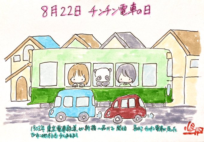 8月22日 #チンチン電車の日 他に 金シャチの日 ヤバイ夫婦の日 はいチーズ!の日 パニーニの日 藤村忌 等など... #今日は何の日 #落書き #イラスト #アナログイラスト #心の落書き