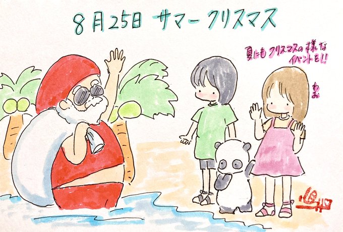 8月25日 #サマークリスマス 他に 即席ラーメン記念日 東京国際空港開港記念日 川柳発祥の日 パステル和(NAGOMI)アート パラスポーツの日 #今日は何の日 #落書き #イラスト #アナログイラスト #心の落書き