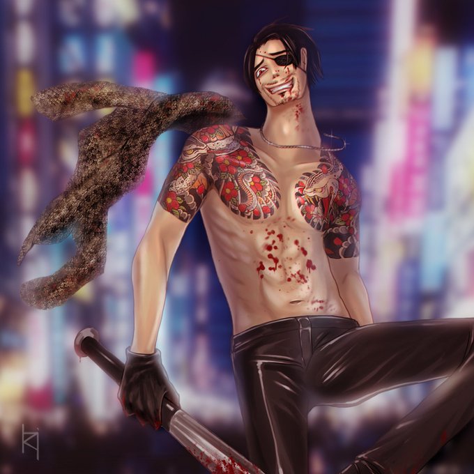 目が腫れてるのみて男前に、最近龍が如くやりすぎて真島病にかかったんじゃね?って話に。